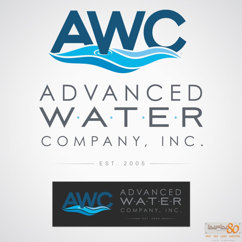 Final logo design and three alternate corporate identity concepts created for Advanced Water Company (AWC) of Las Vegas in 2019