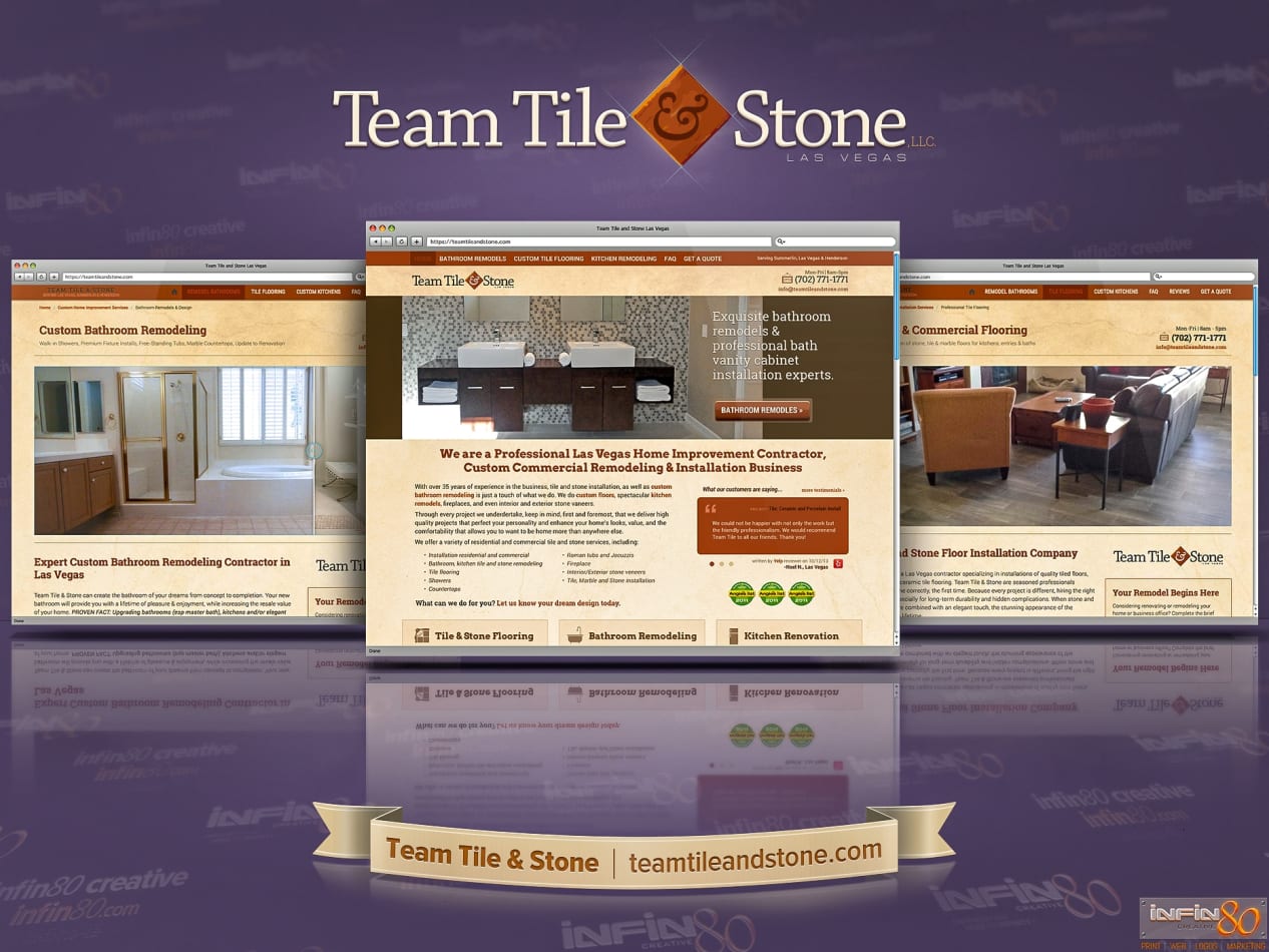 Custom design and coded, responsive website design made for the professional Las Vegas contractor company, Team Tile & Stone, Inc.