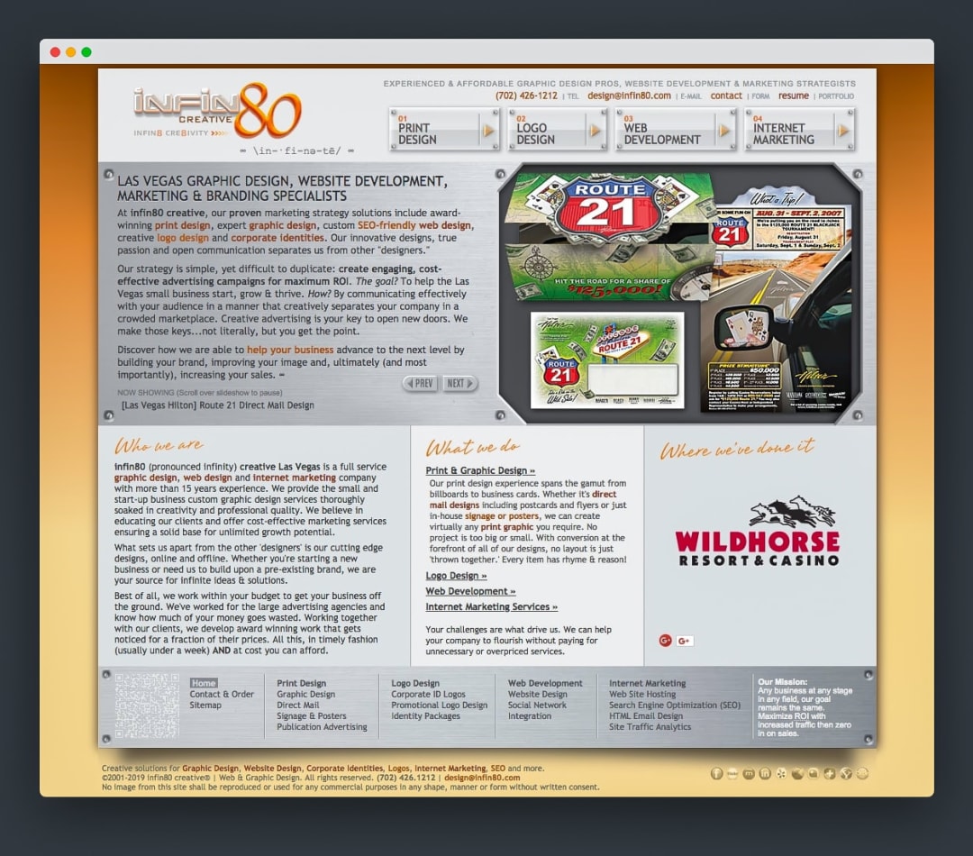 “His clients rave about his work, his knowledge and the commitment given to ensure successful brand design and profitable marketing campaigns…in 2001, he launched his own ad agency infin80 creative® | Web & Graphic Design”