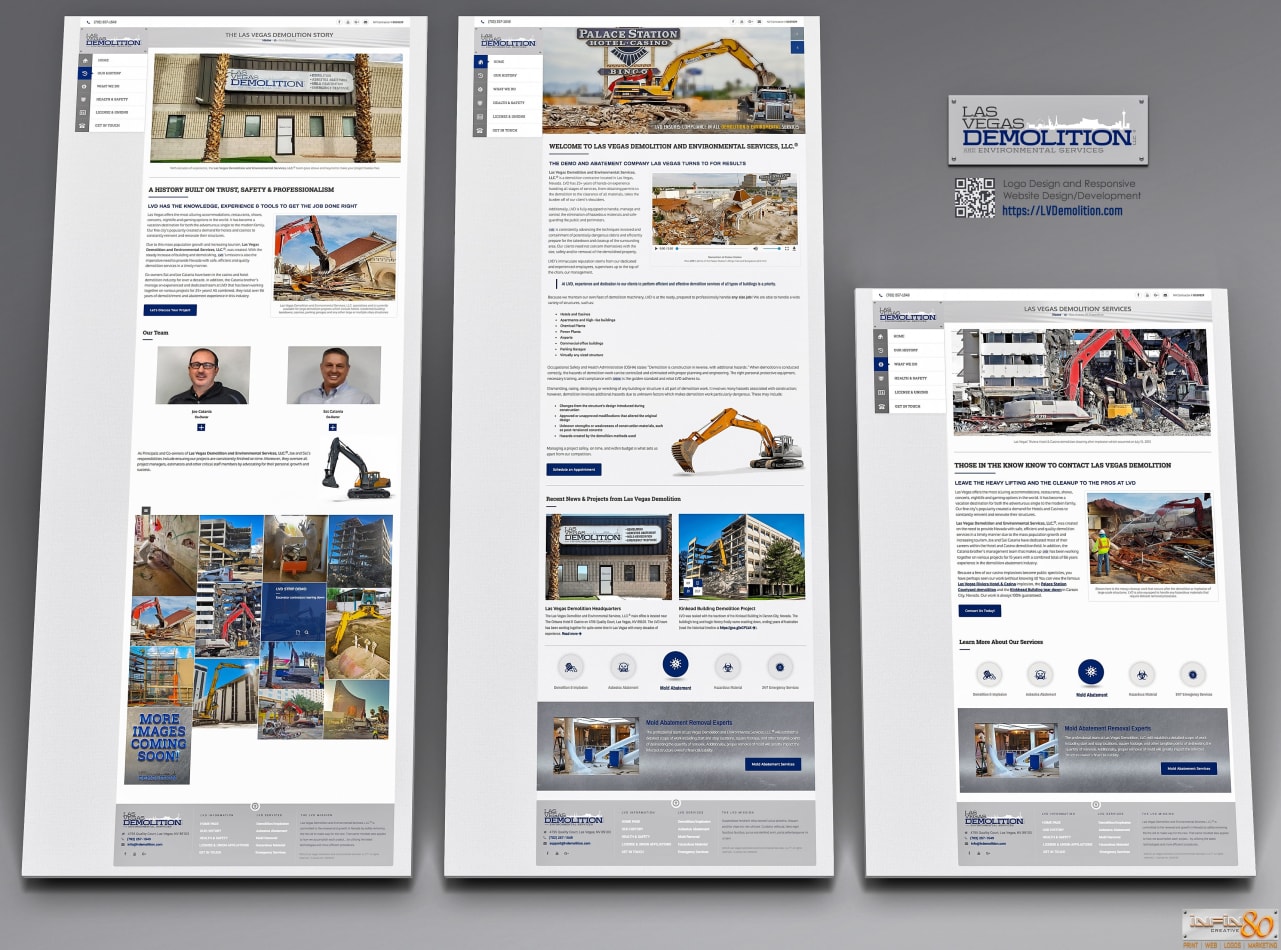 Logo, branding, responsive web design, development utilizing the latest organic search engine optimization (SEO) techniques created for Las Vegas Demolition™