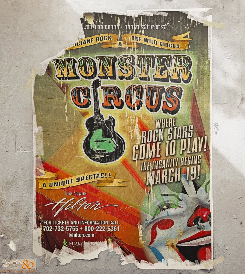 Poster design created for Monster Circus performing at Las Vegas Hilton. Realistic worn and faded poster on wall mockup