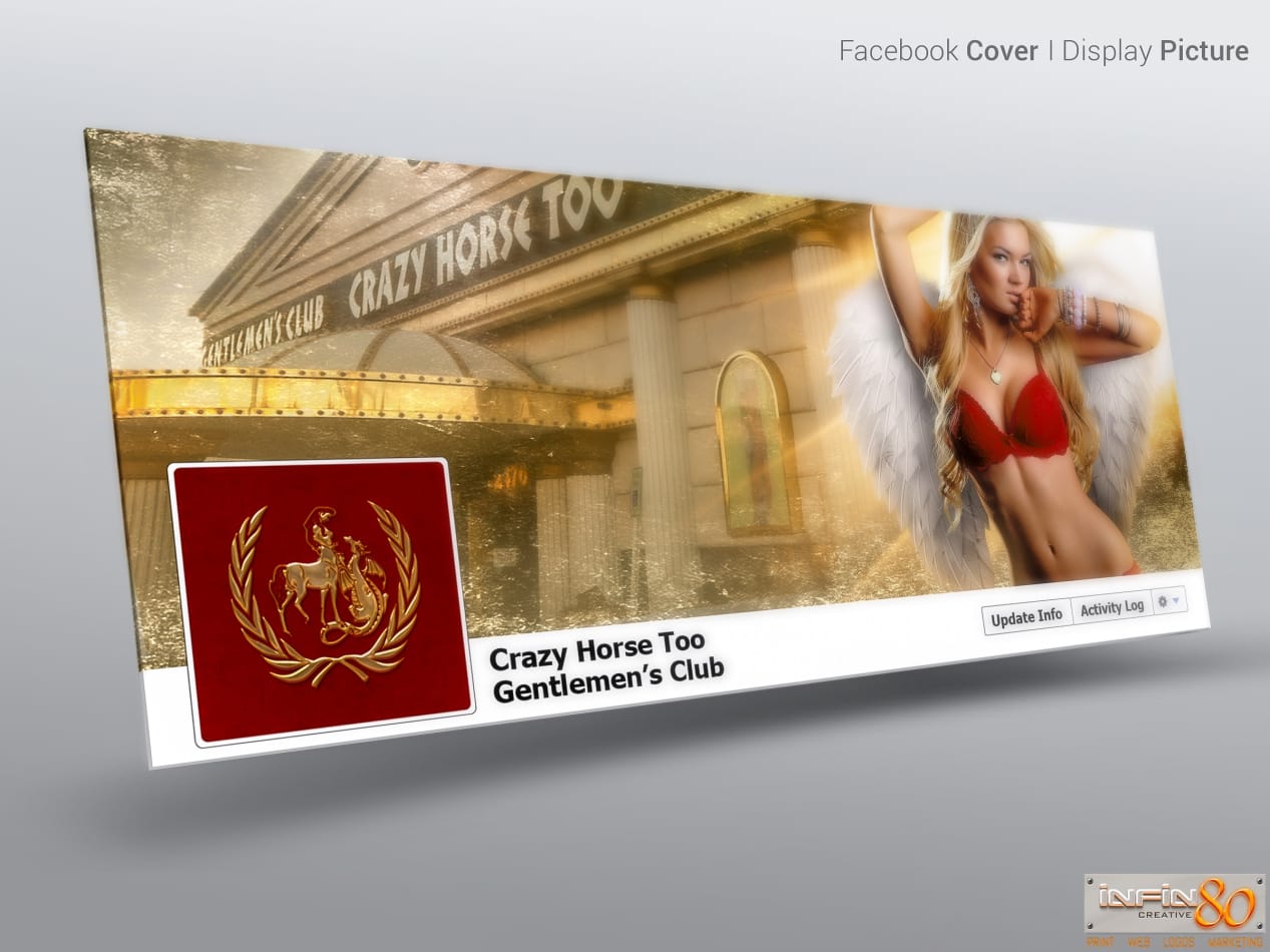 Branded Facebook and Google+ profile designs showcasing the social media marketing and management services from Crazy Horse Too in Las Vegas
