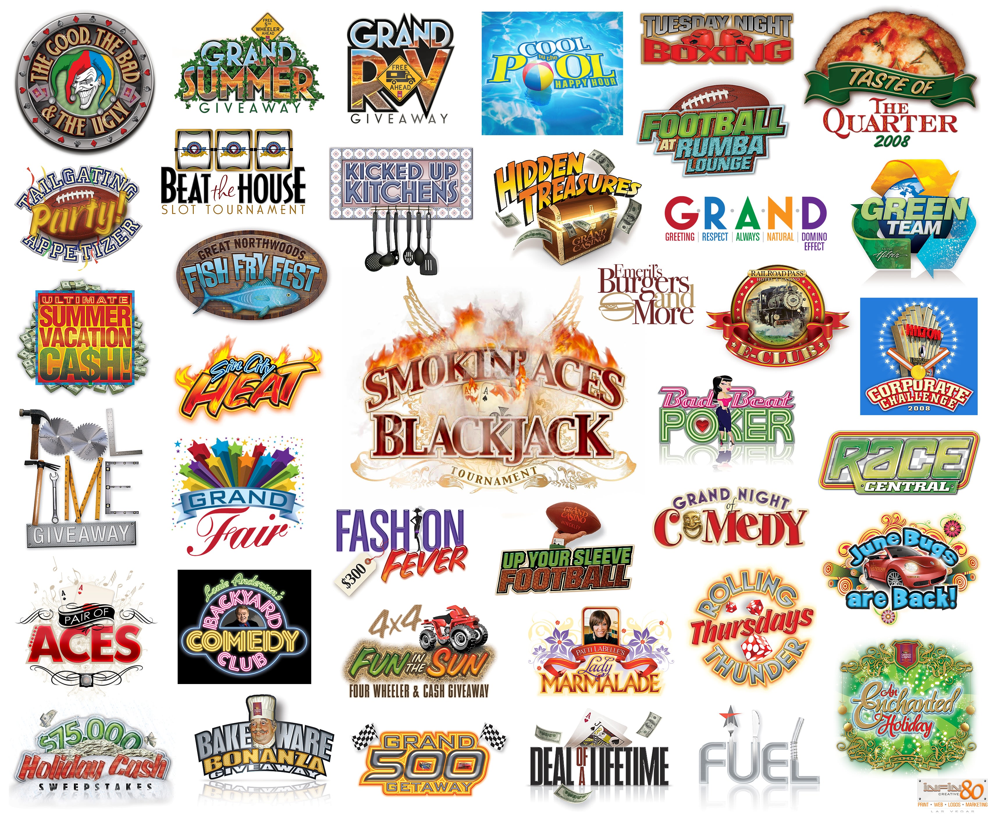 Variety of logos created for casino/gaming industry to market events and tournaments. View casino-related digital design portfolio samples